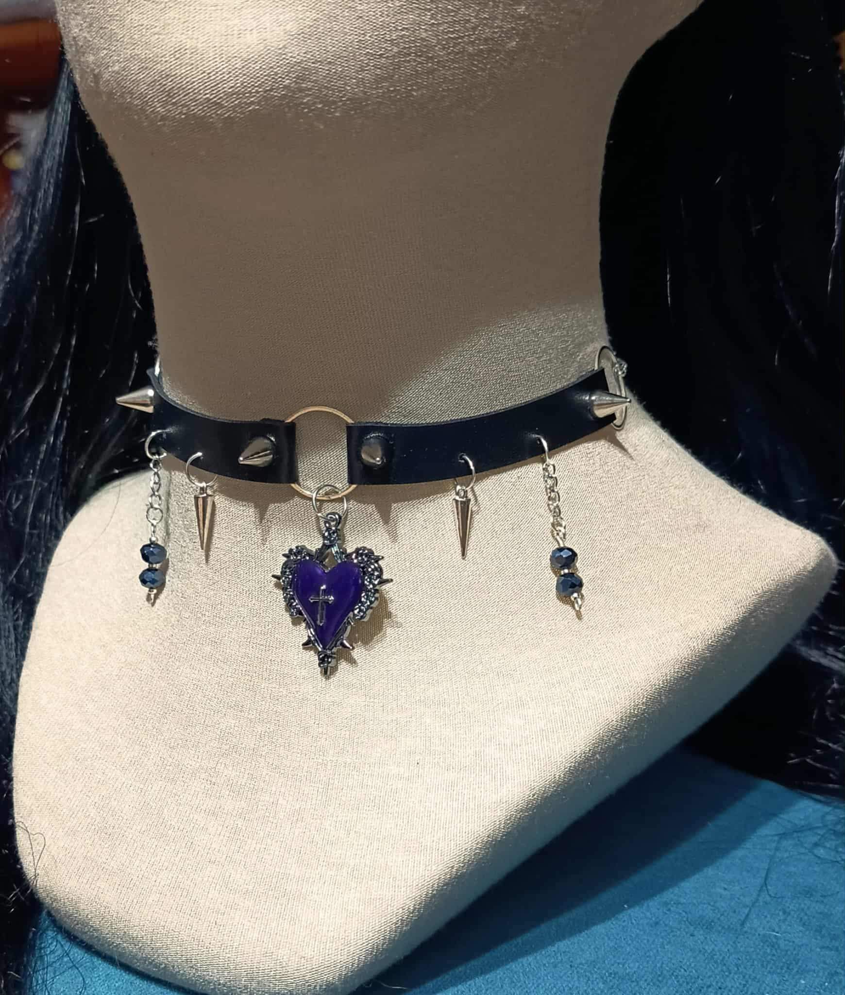 🖤Gotycki choker z fioletowym sercem, soplami i kryształkami. 🖤