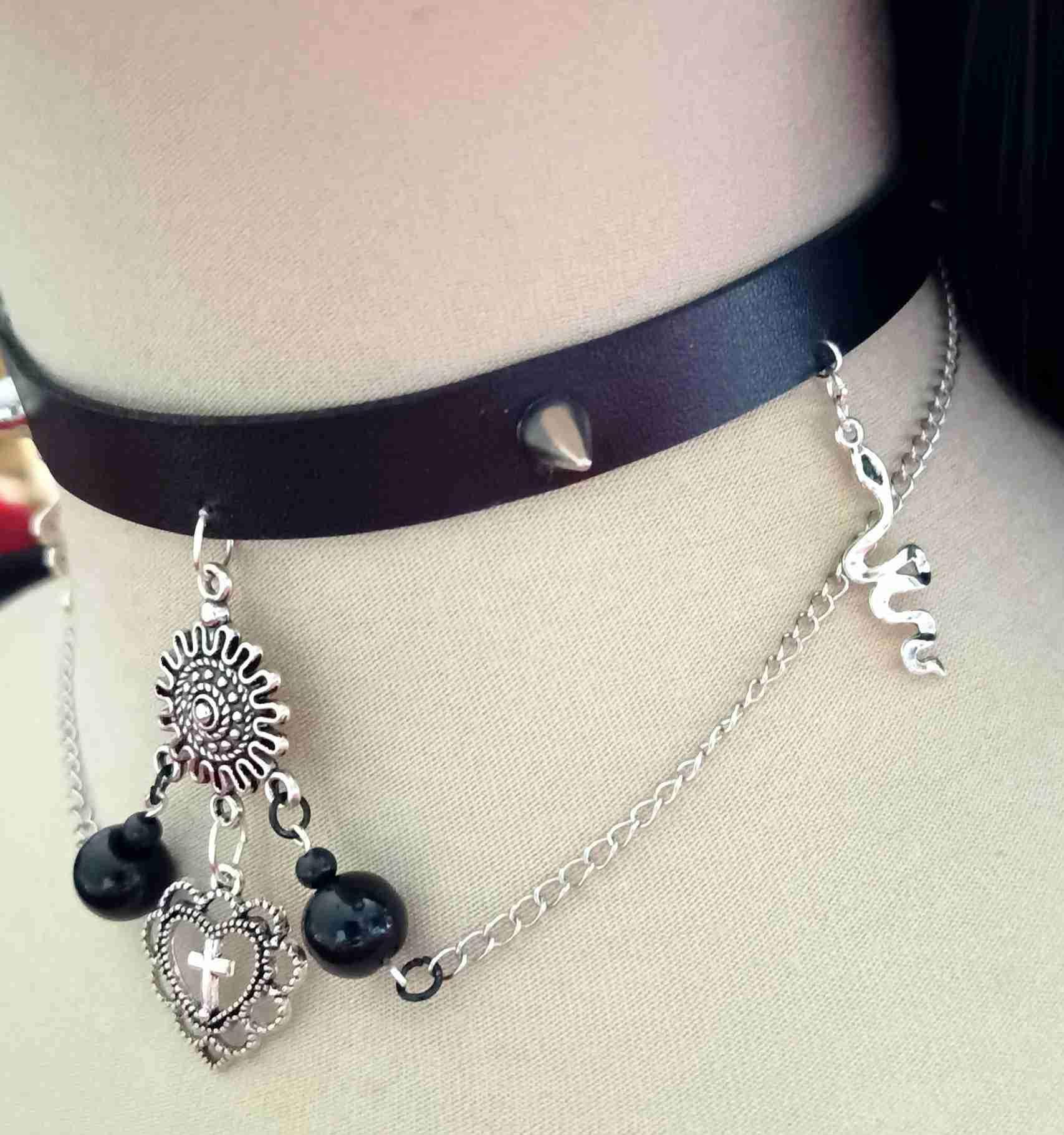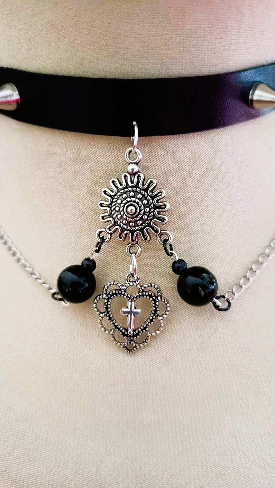 ✨ozdobiony metalowymi ćwiekami i delikatnymi zawieszkami - koraliki serce z krzyżykiem i węże .