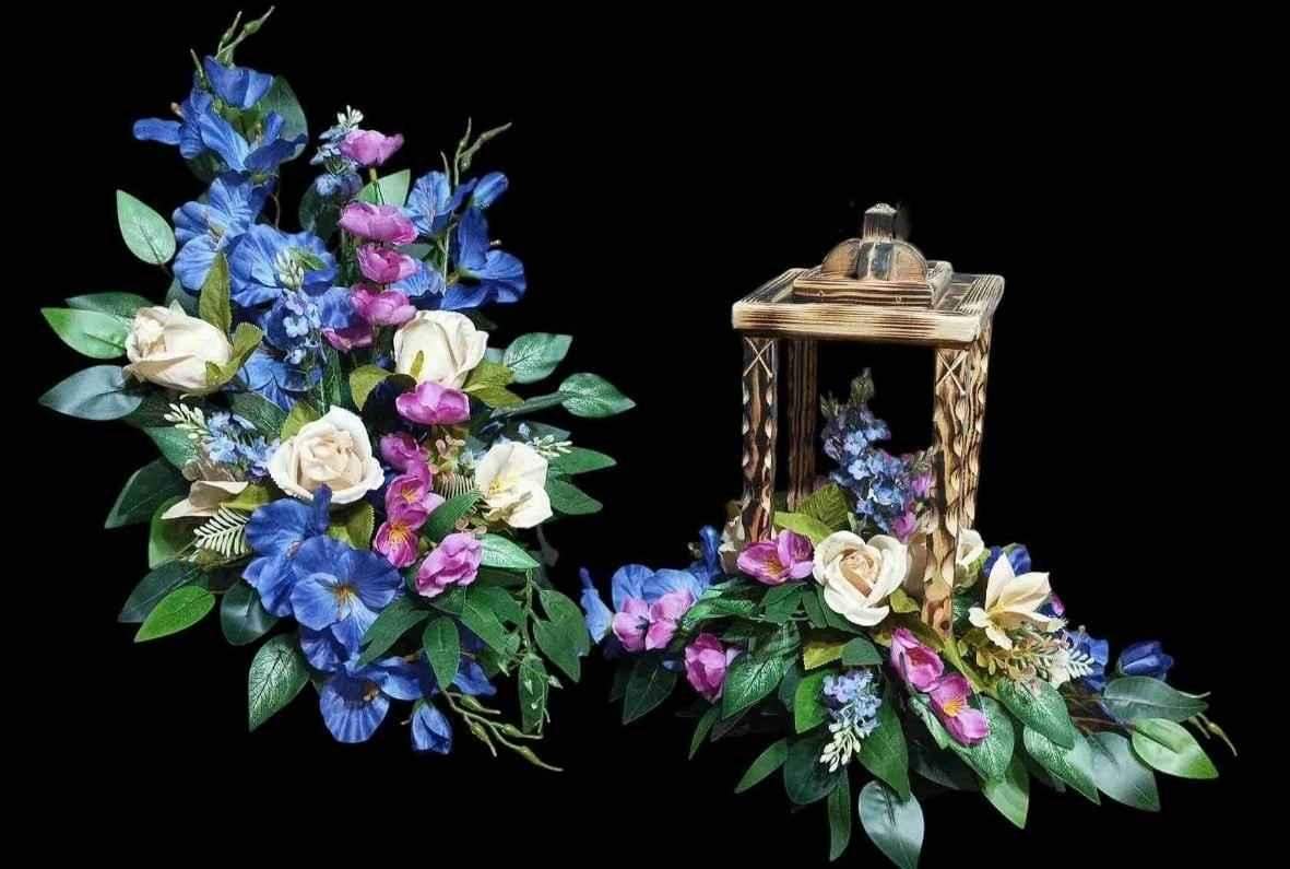 🎍Kompozycja nagrobna w trzech kolorach z drewniana latarnią.