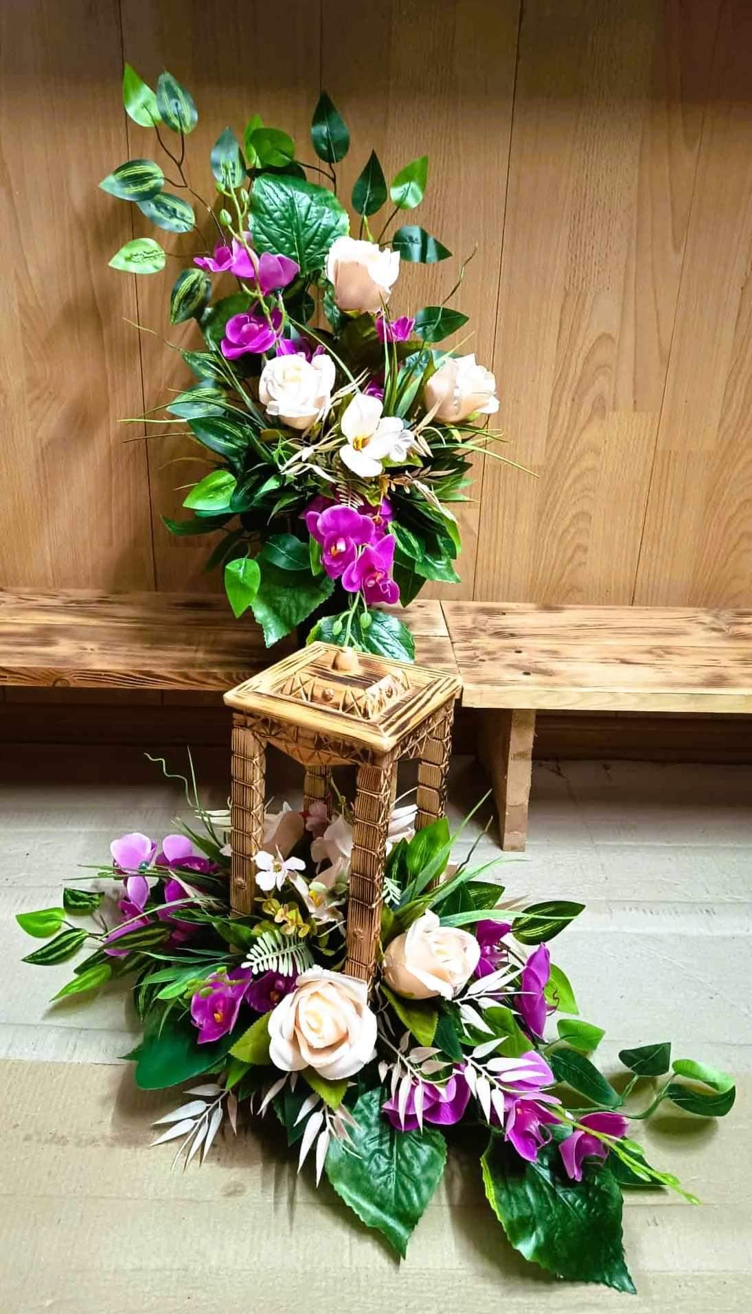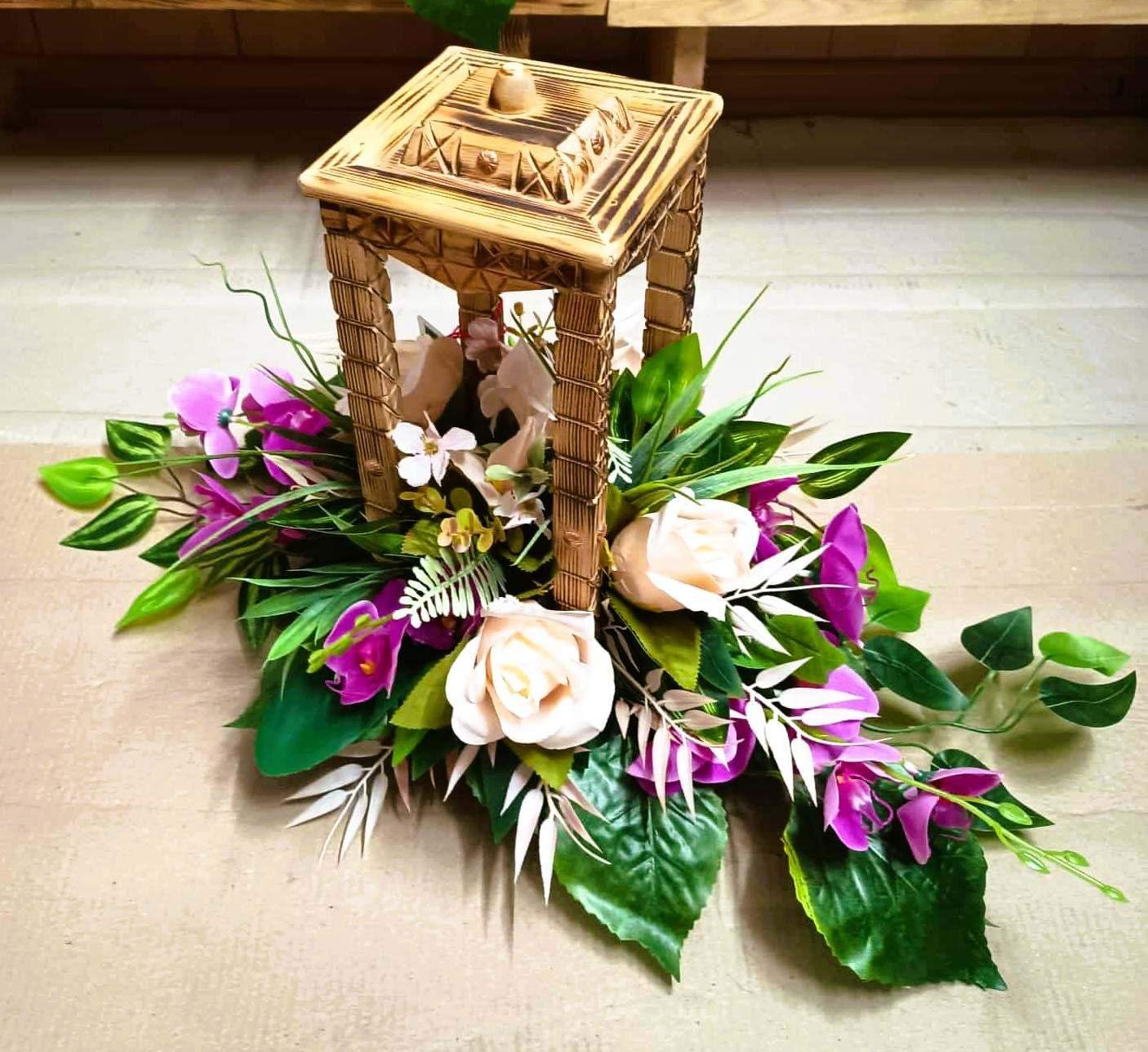 Latarnia, wykonana ręcznie, opalana i impregnowany w bezbarwnym kolorze z dekoracją kwiatową.