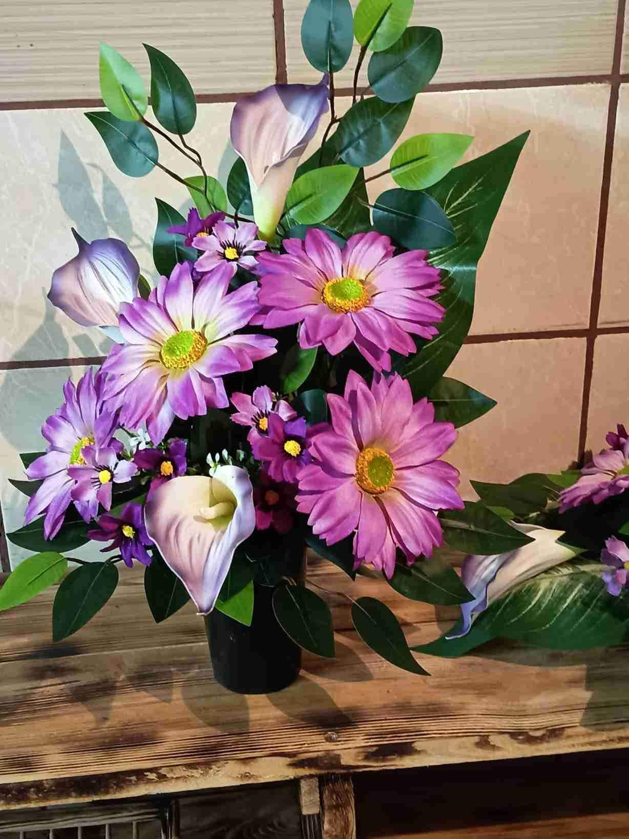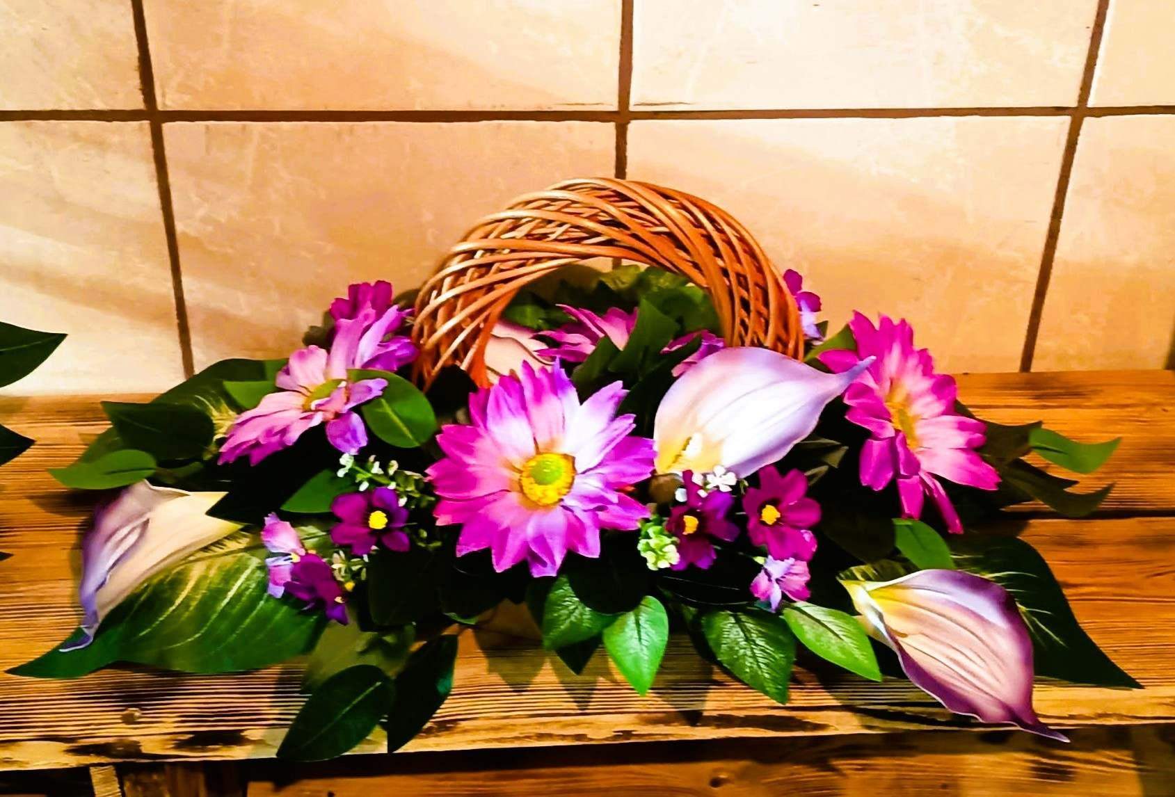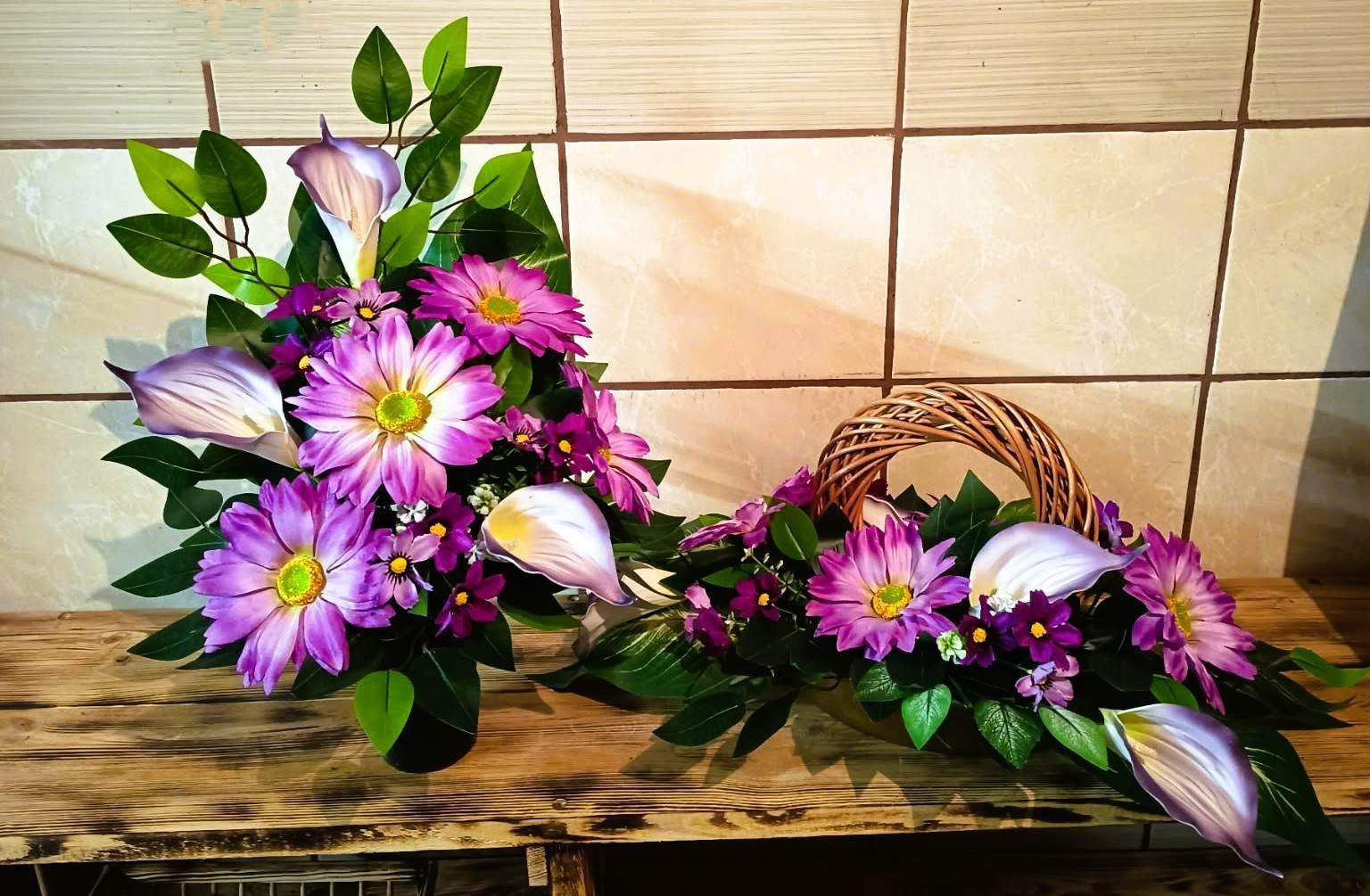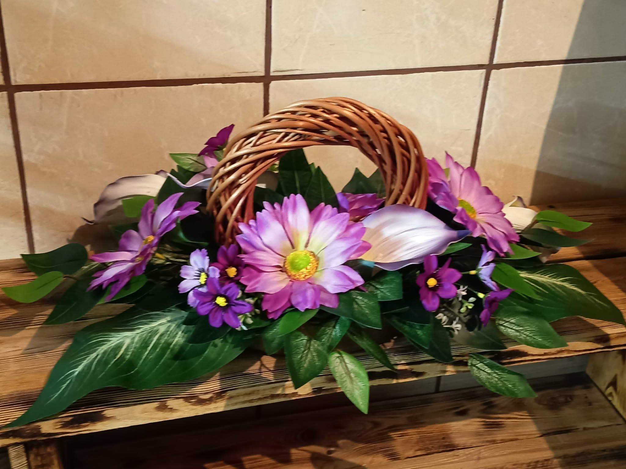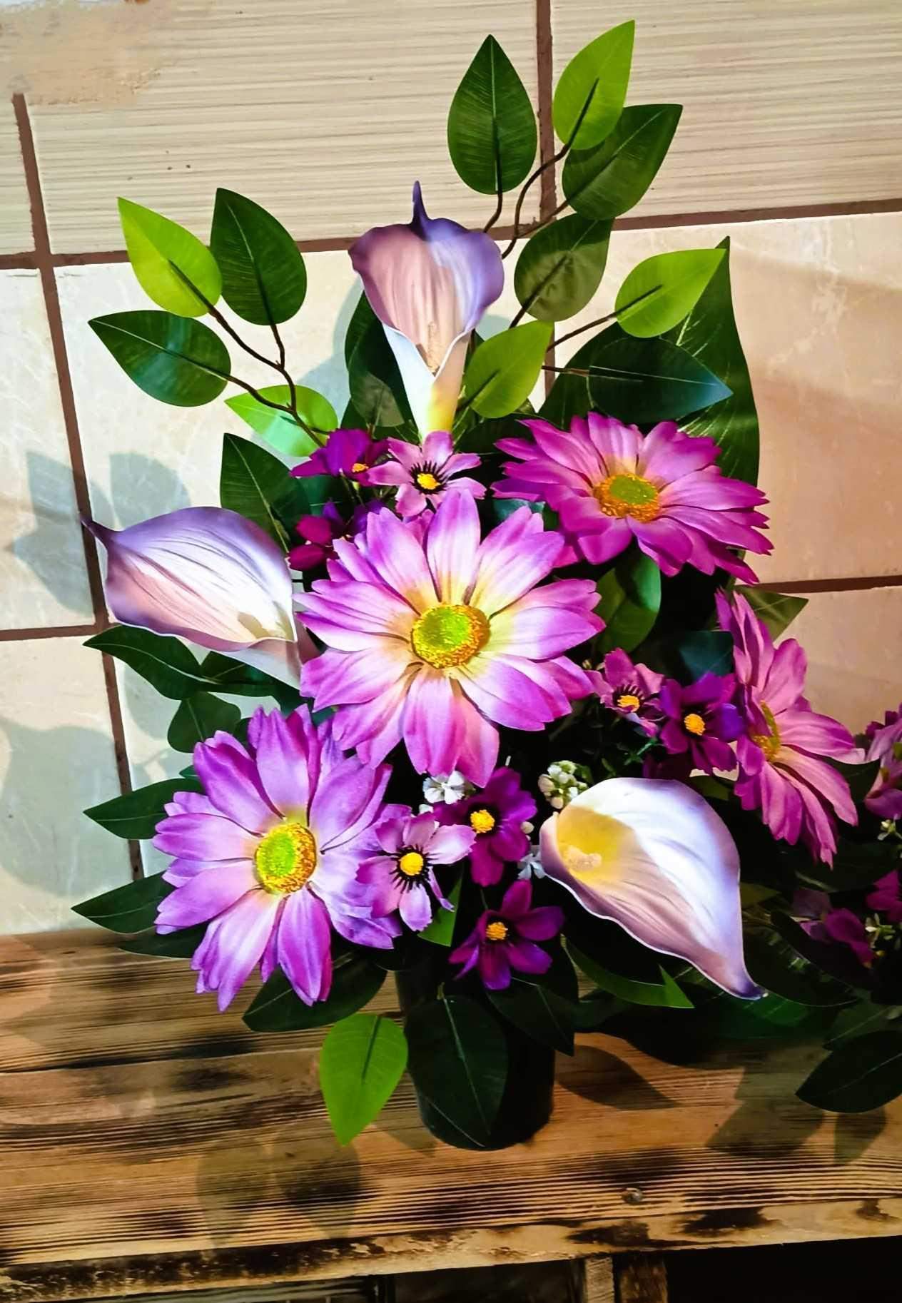 🎍Kompozycja nagrobna w tonacji różowo-liliowo-wrzosowej.