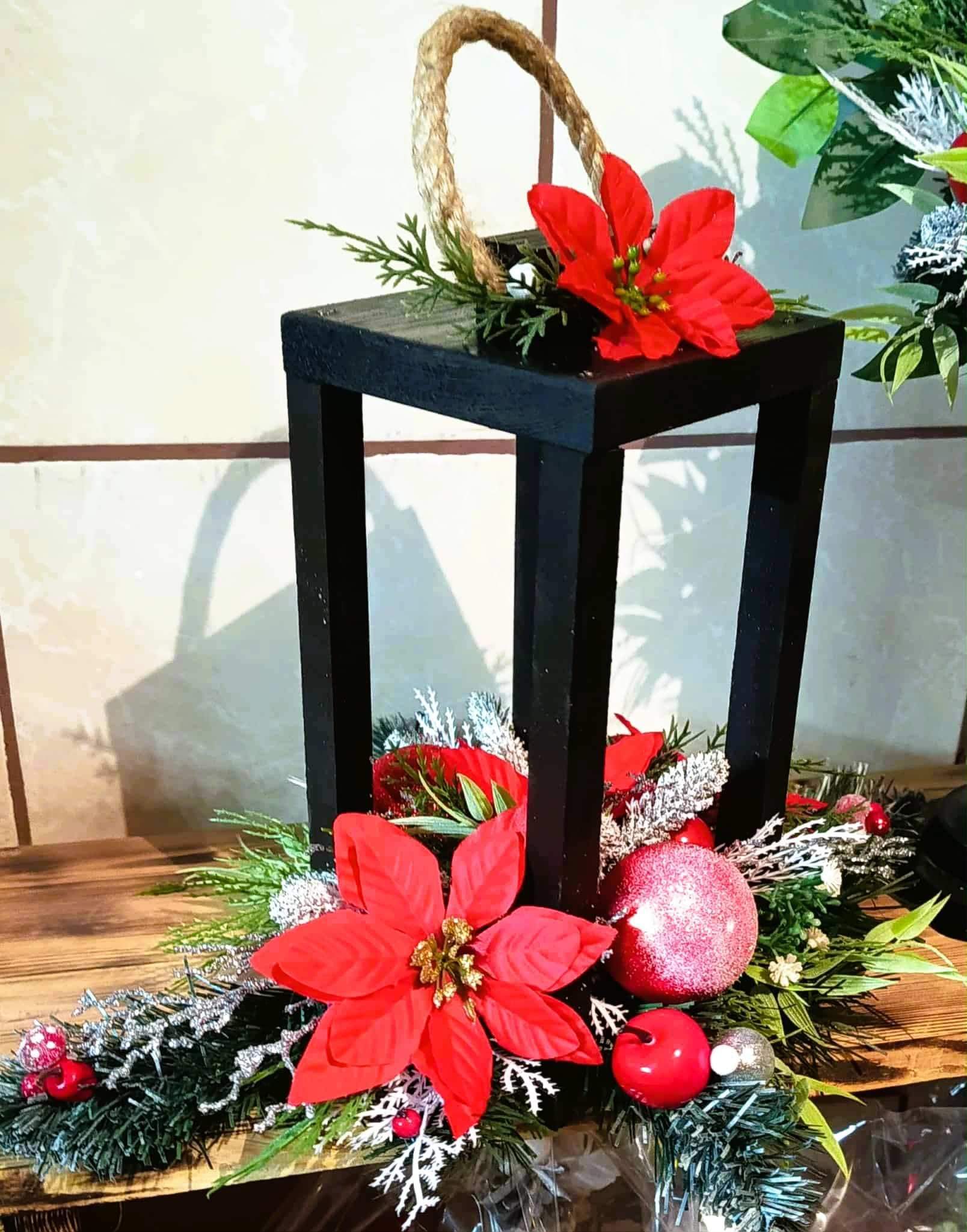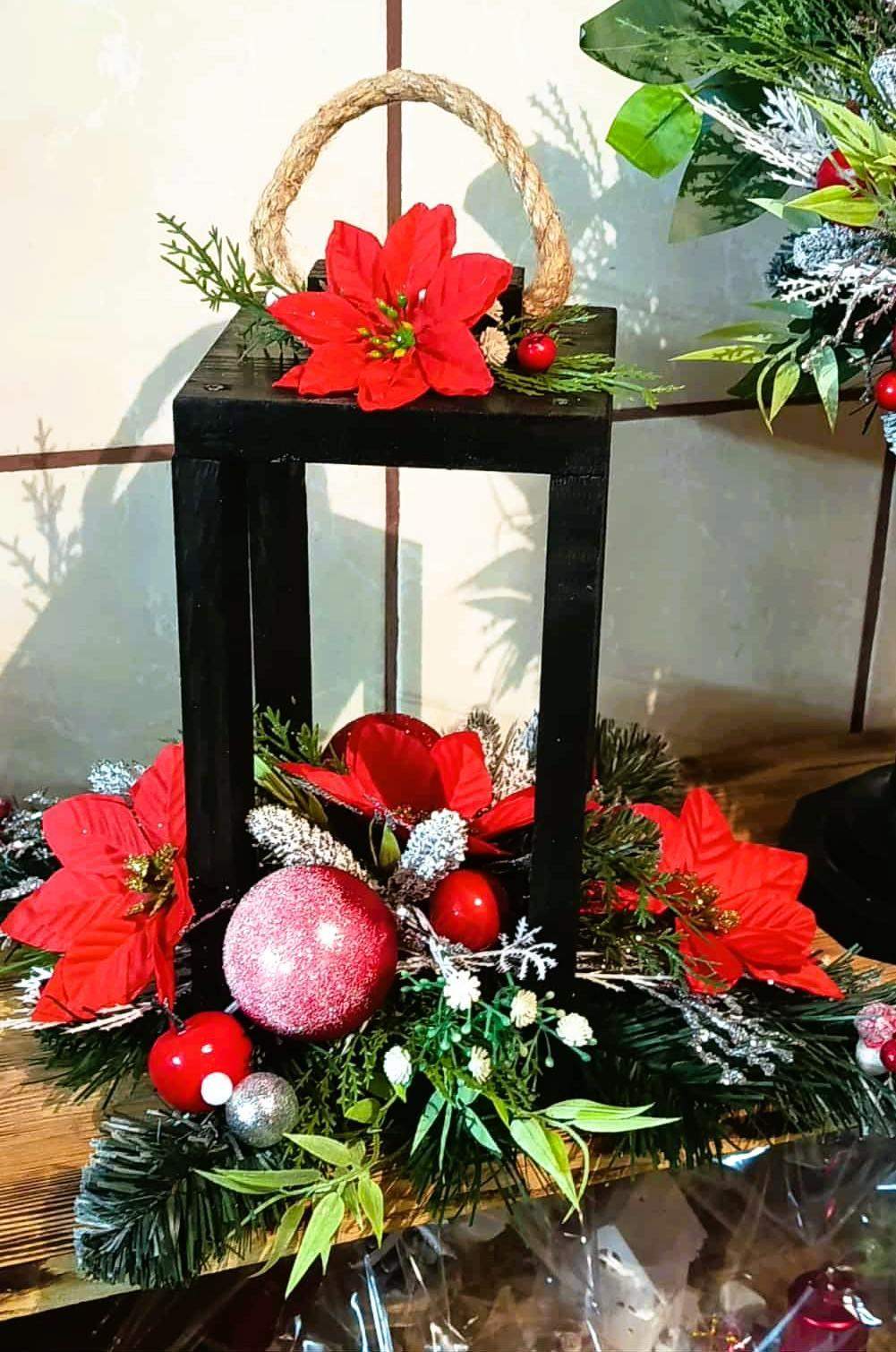 Nagrobny zestaw świąteczny z czarną latarnią.