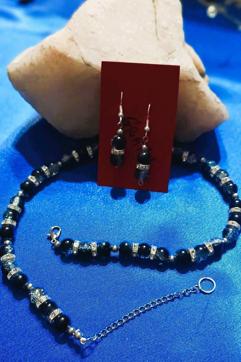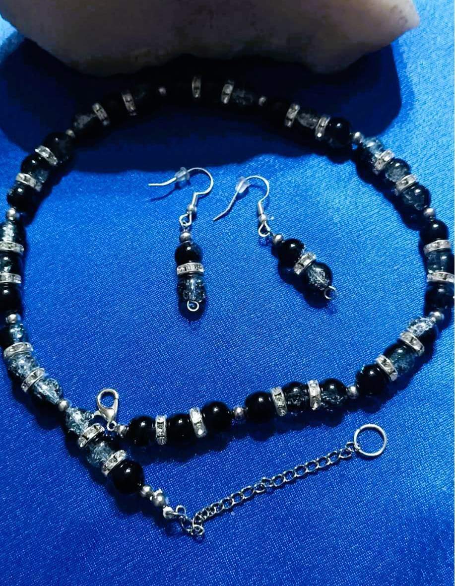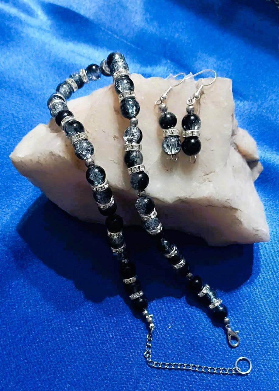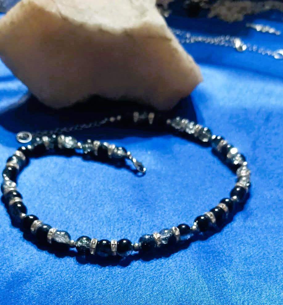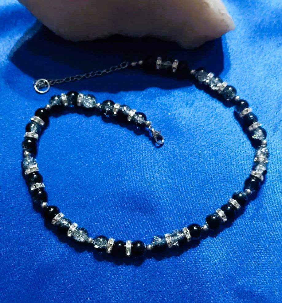 * Wykonany z czarno- kryształowych kul dzielonych srebrzystymi przekładkami