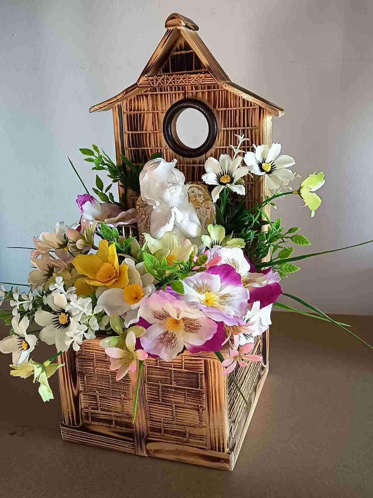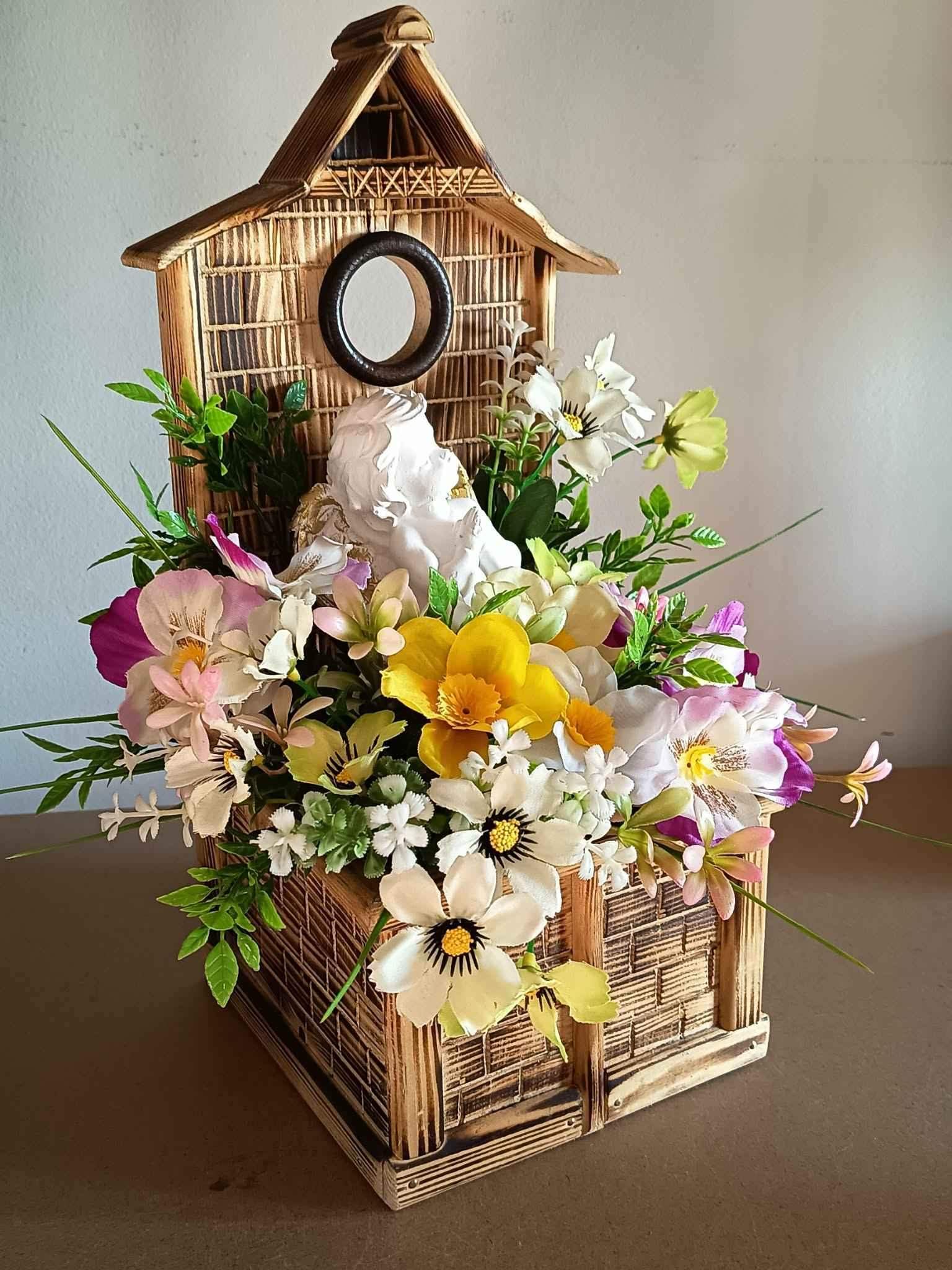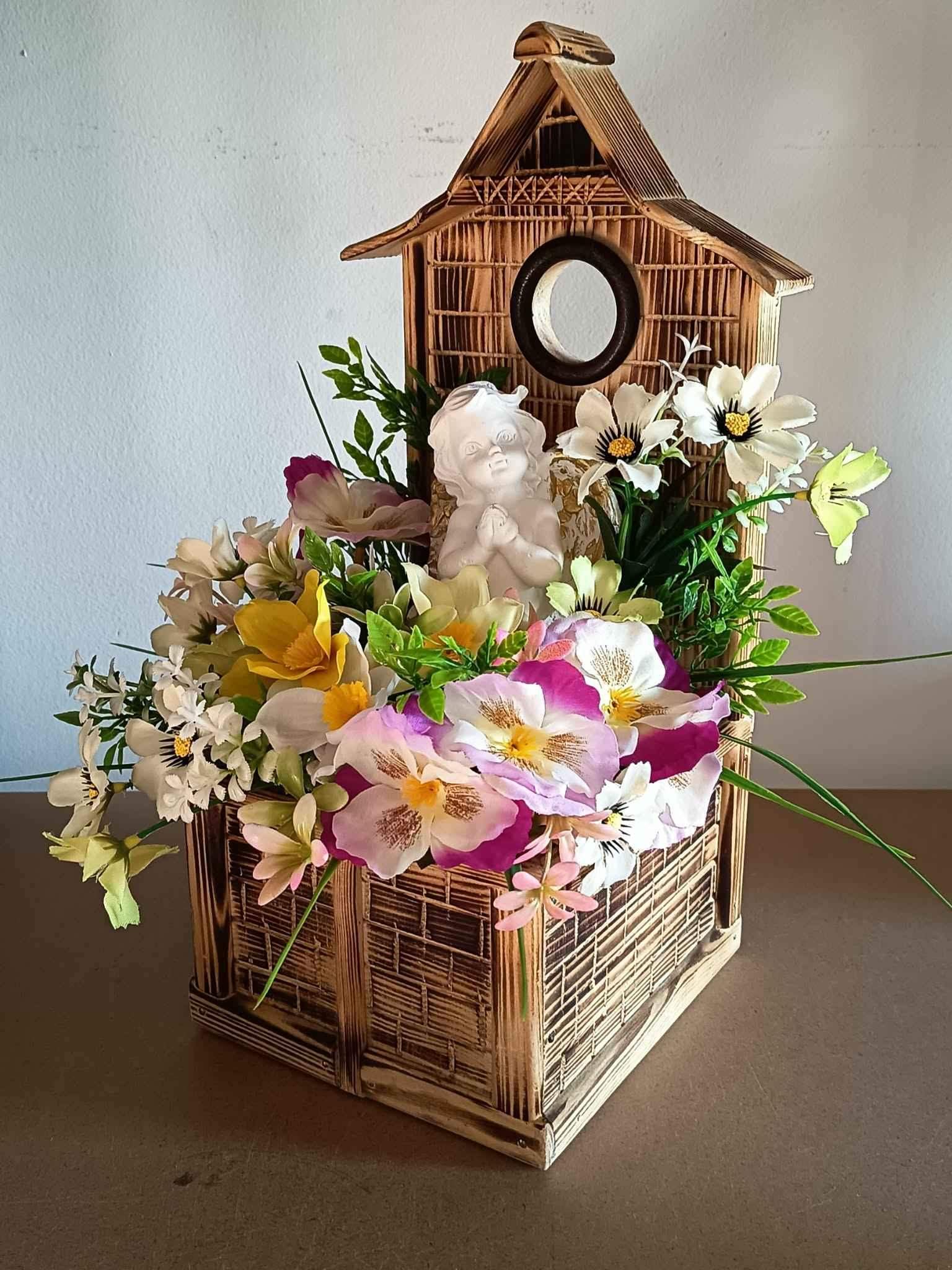 Wiosenna dekoracja z aniołkiem.